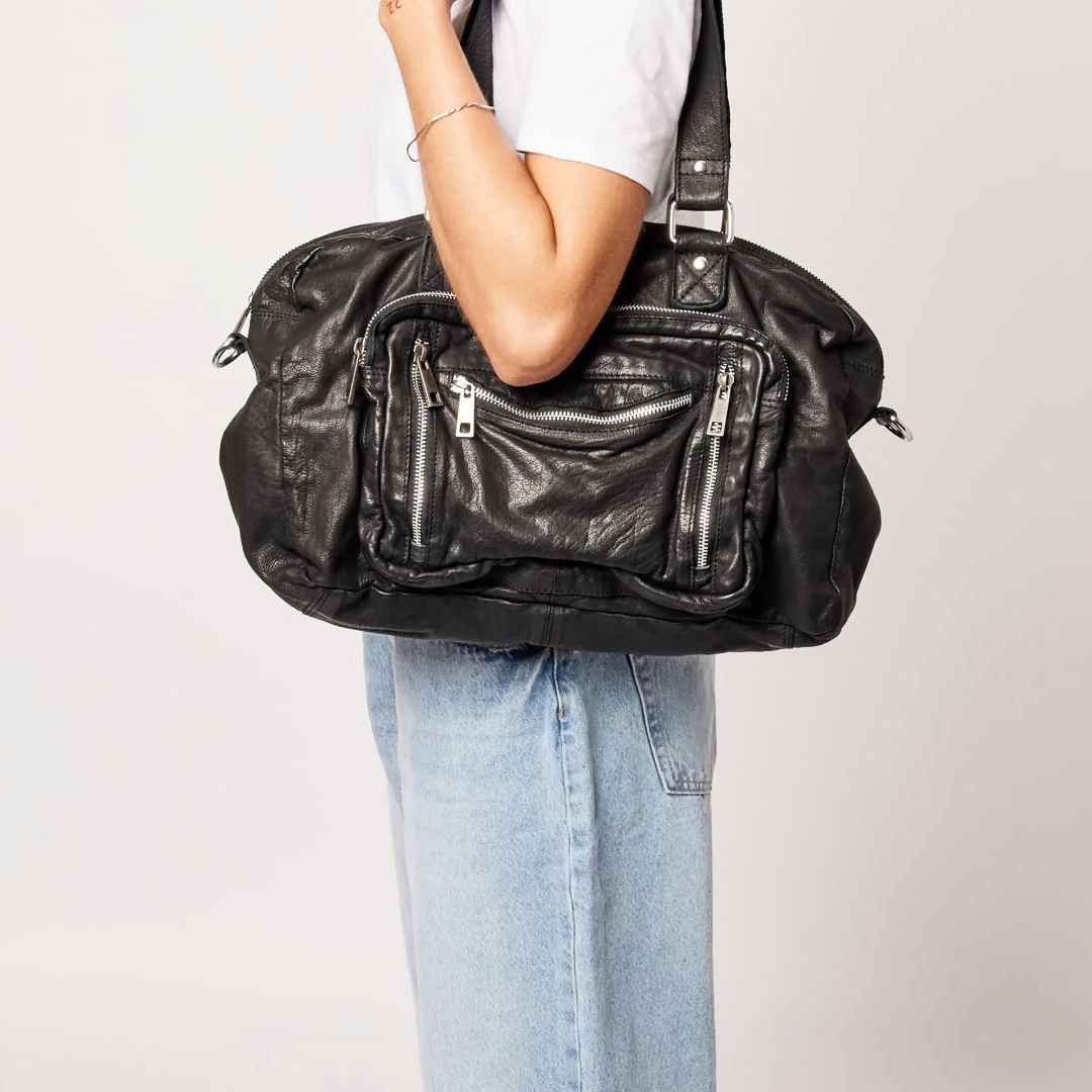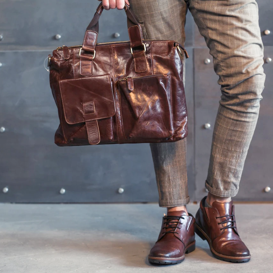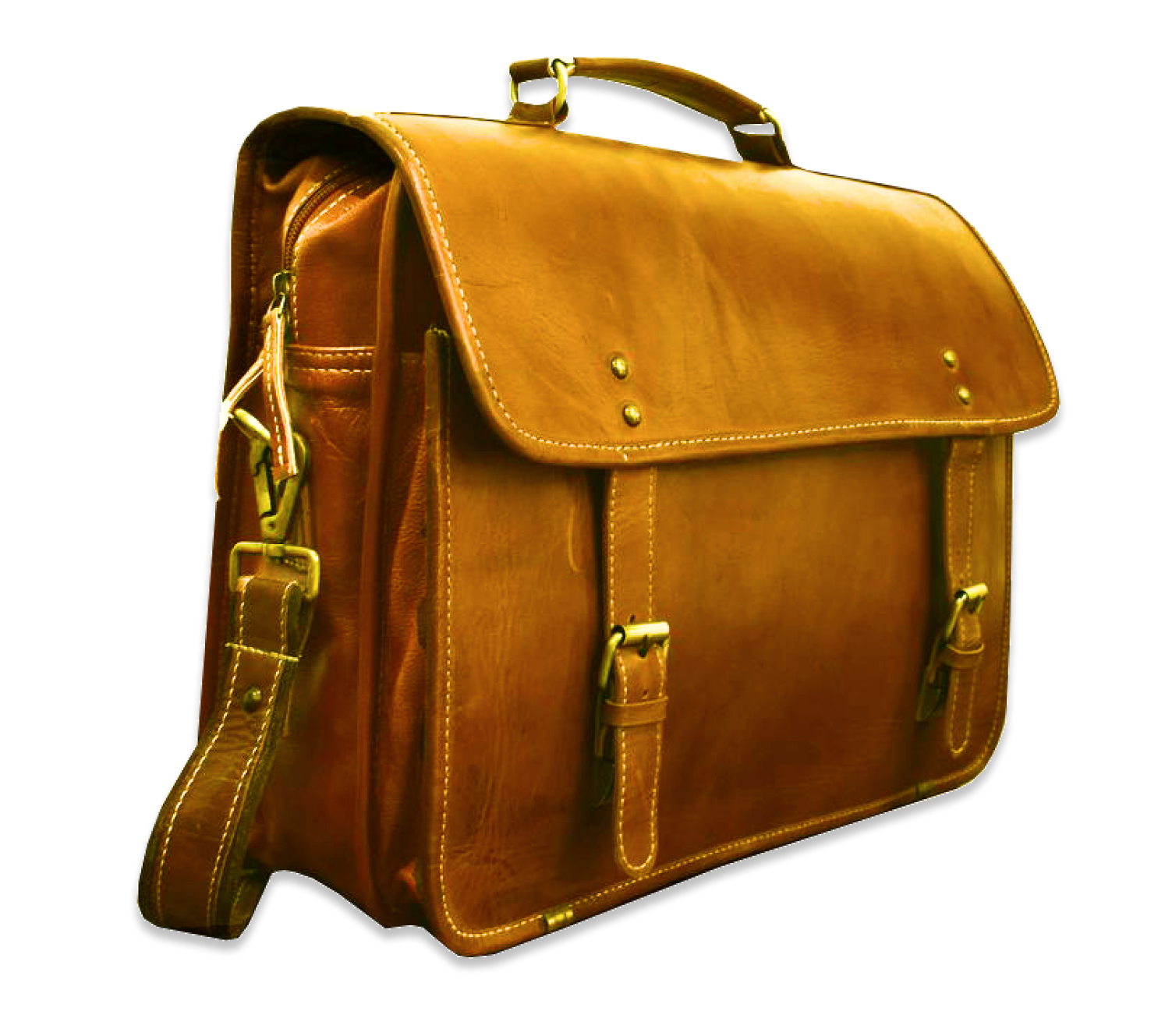 This briefcase is handcrafted by professional crafters using fullgrain leather and sturdy canvas lining. The main strap of this bag has hidden locks that make it quick and simple to open and lock..